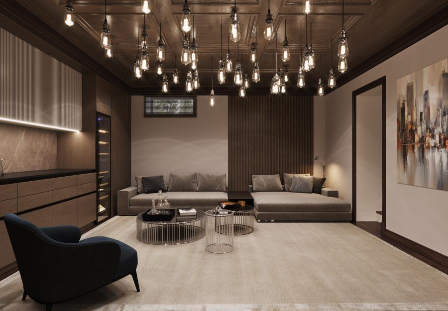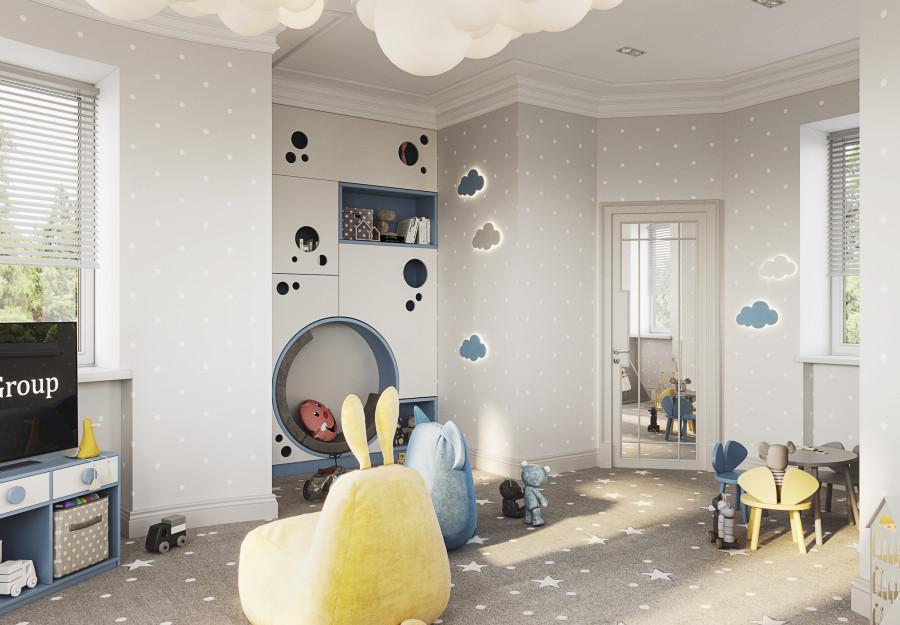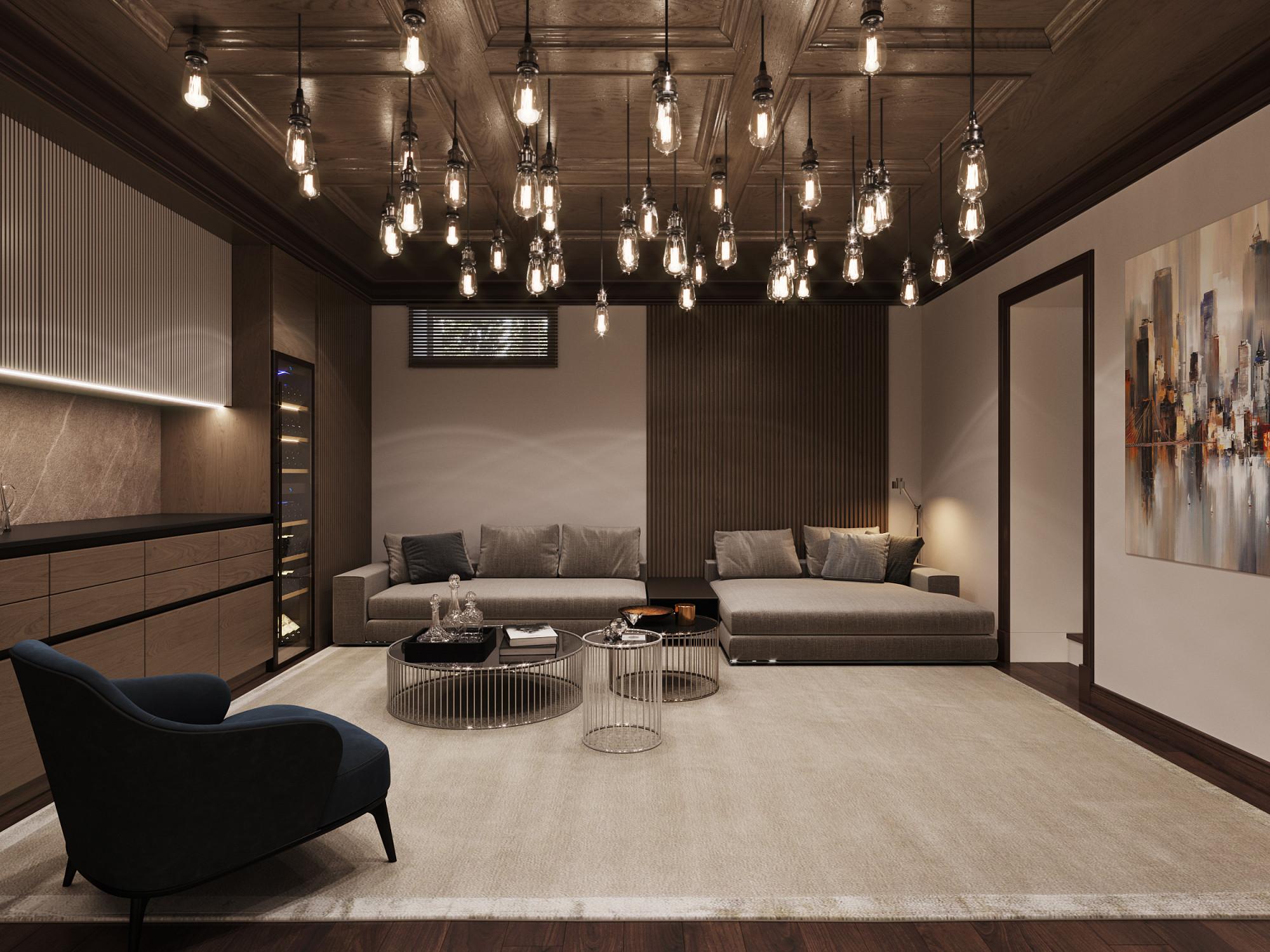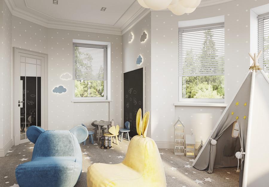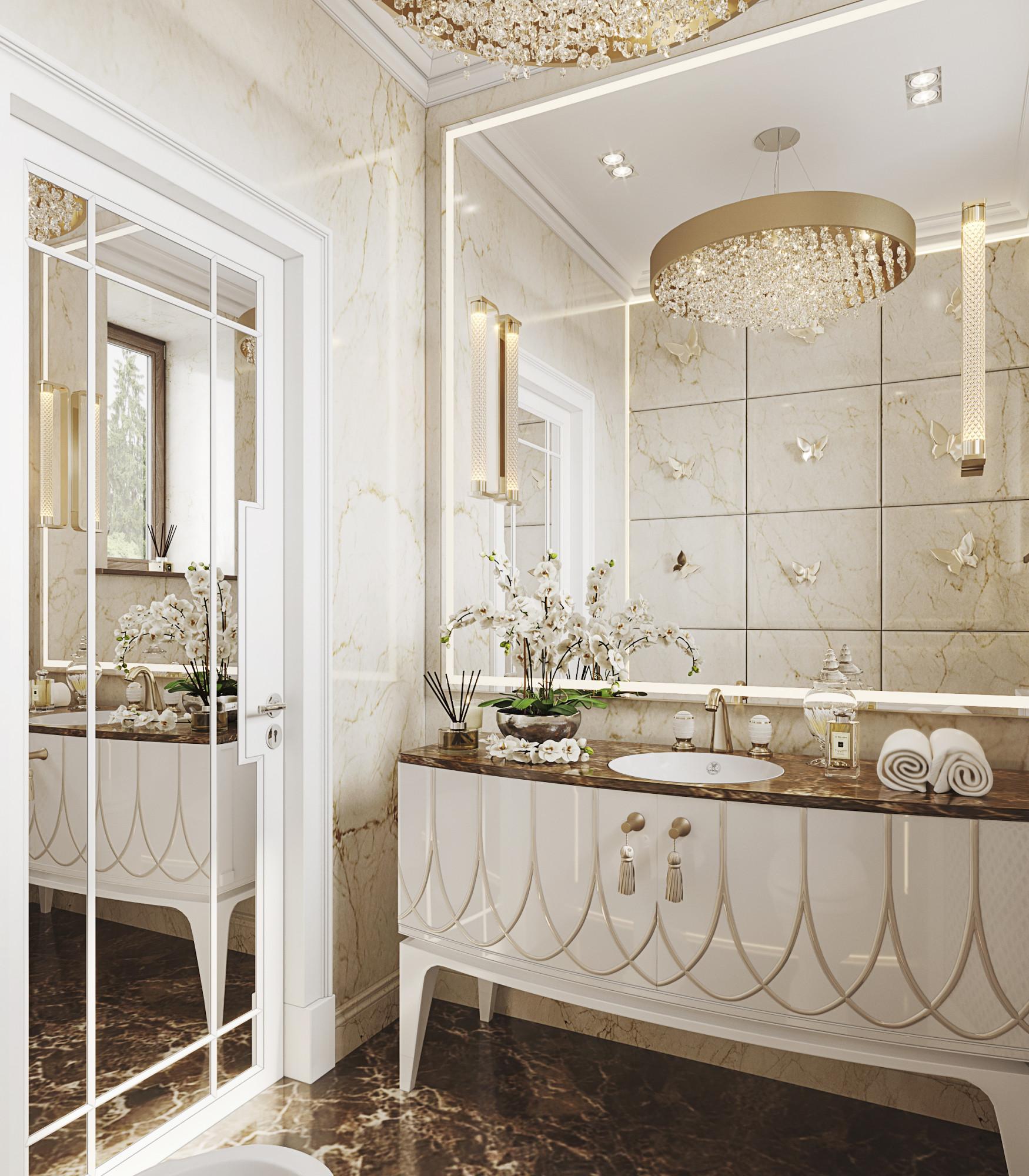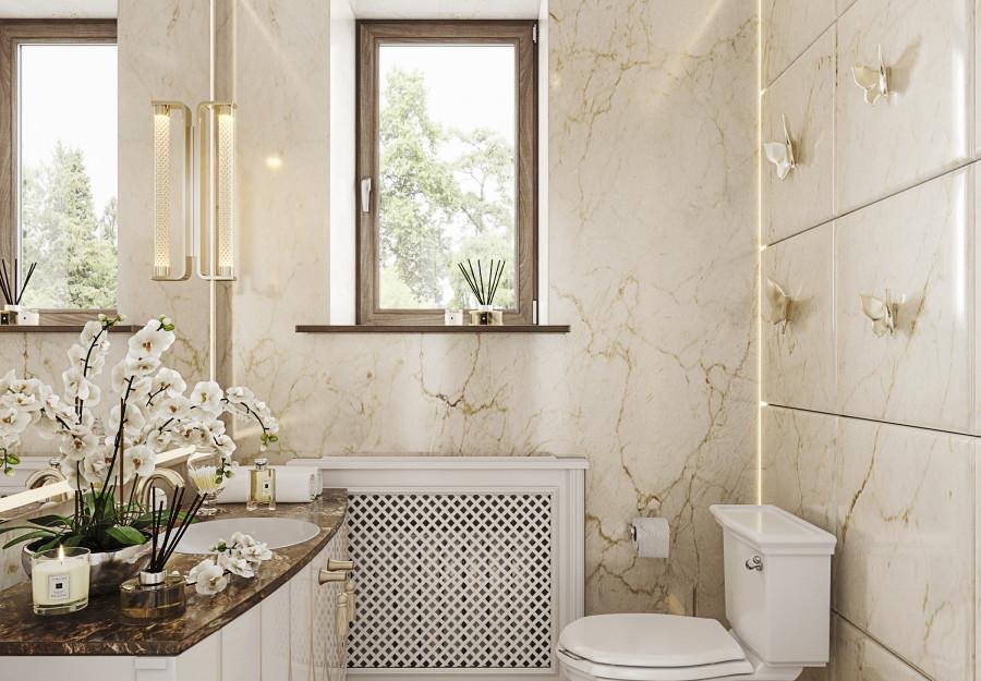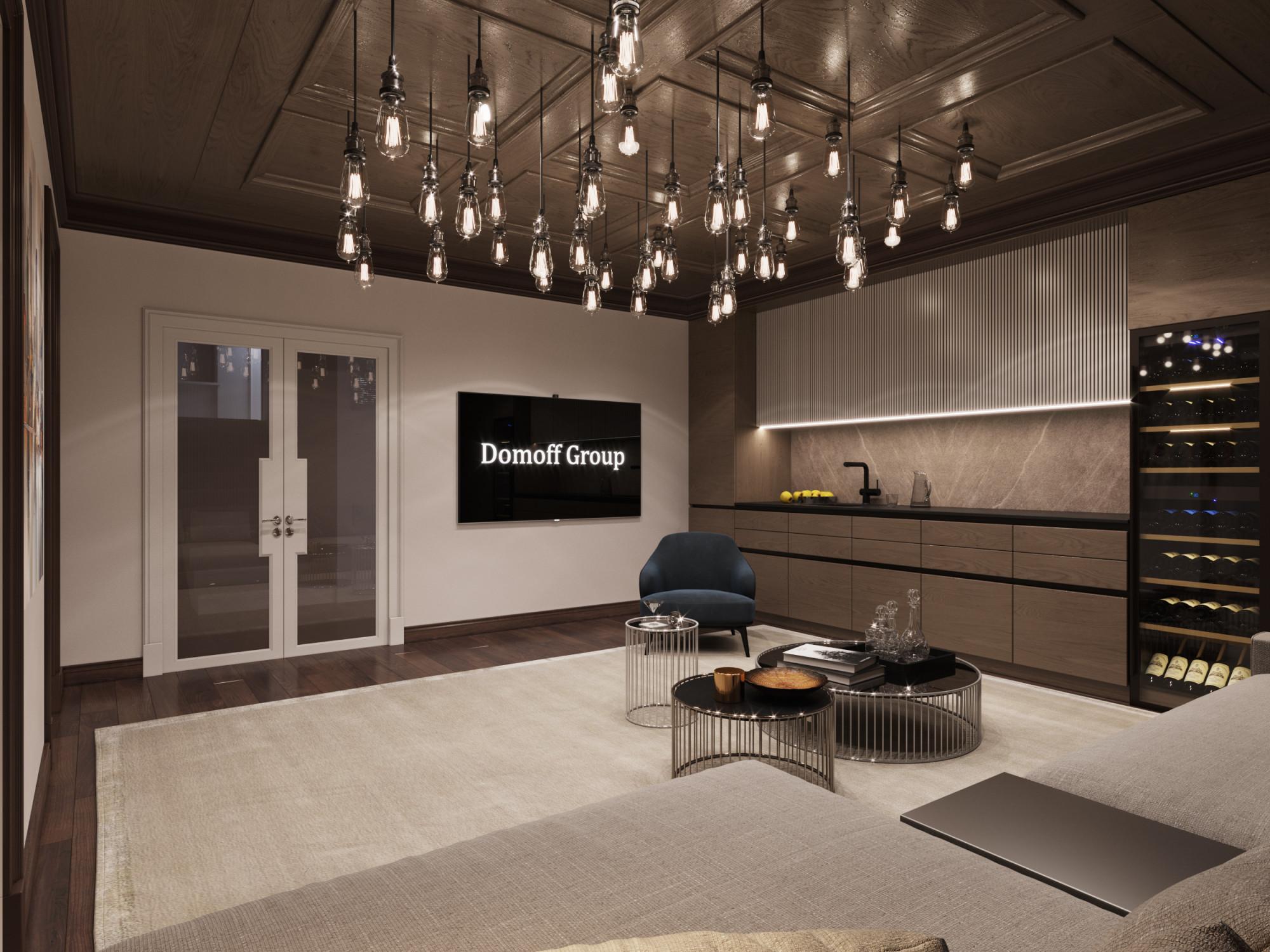 An example of impeccable modern classical interior design where elegance and comfort blend seamlessly with sophistication and light. Special attention is given to details: delicate decorative moldings on the walls and subtle stucco work emphasize the architectural expressiveness of the space while maintaining its lightness and airiness. The light-colored walls and ceiling visually expand the room, while the natural parquet flooring laid in a classic herringbone pattern adds warmth and coziness.
